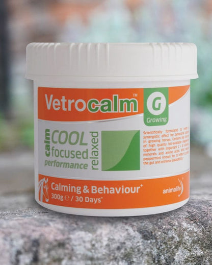 Vetrocalm Growing is scientifically formulated to create a synergistic effect for behavioral support in growing horses. Contains key sources of high quality bio-available magnesium together with important C B vitamins, minerals and amino acids. With natural peppermint known for its effect to settle the gut and enhance palatability.