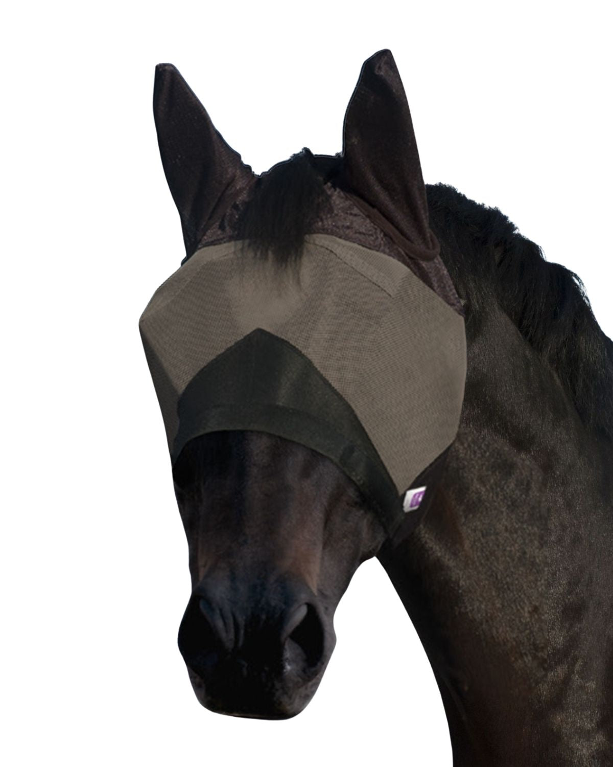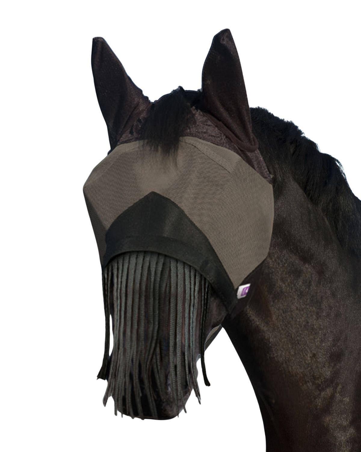 The Combat mask is made from soft coated nylon micro mesh, making it very soft and comfortable for your horse. There is a new elastic piece that goes around the ears to help it stay in place with no slipping or rubbing. Many horses find a way to remove their fly mask but we have tested this new style and found it to be very effective in staying on your horse.
