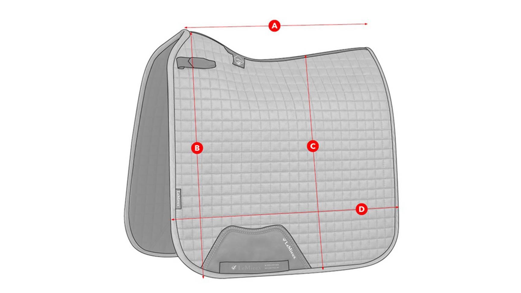 The textured PU leather girth protection area is complimented by an embossed logo and carries the usual signature LeMieux lower girth strap with its inner locking loops and its unique metal badge on a leather mount in the lower back corner.