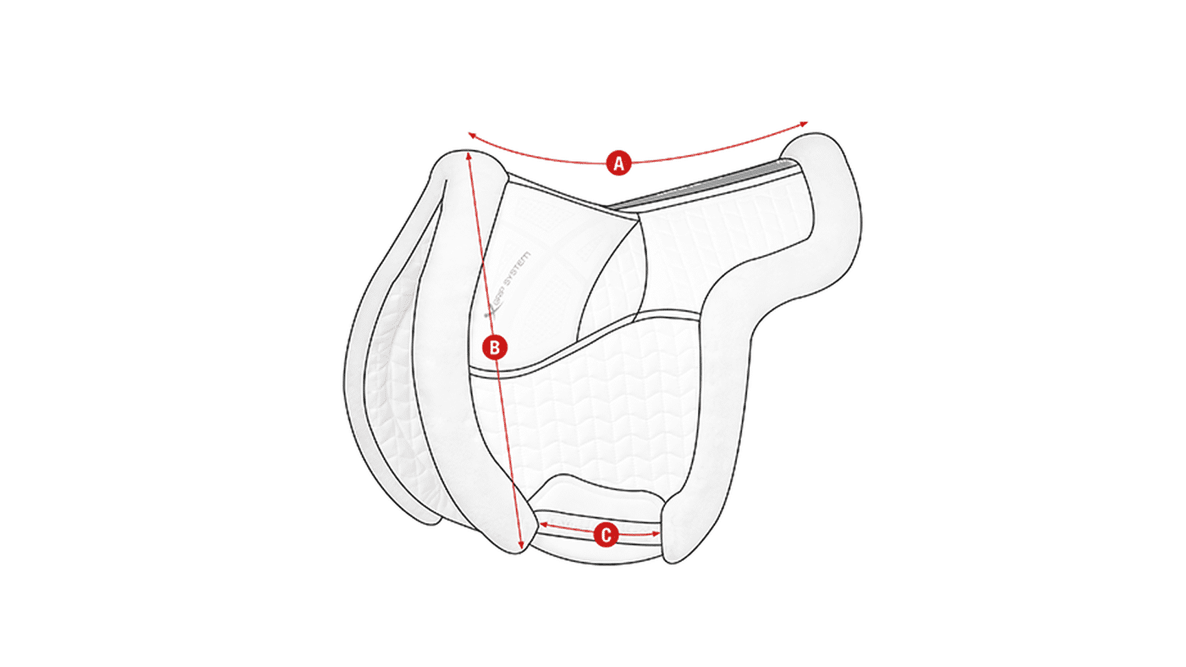 The sporty girth protection area lends subtle luxury and practical durability to the pad.